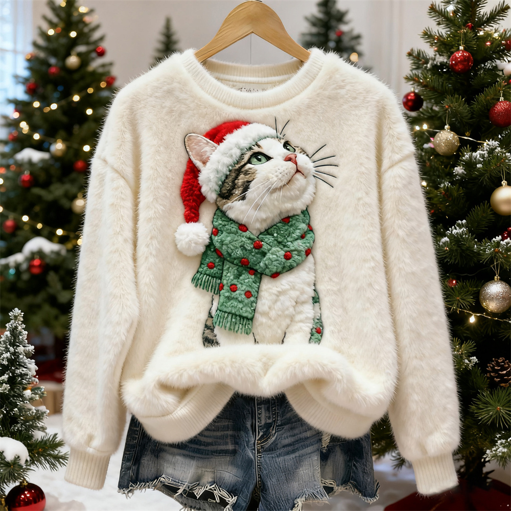 Christmas 3d Plush Cat Women's Fleece Sweater
