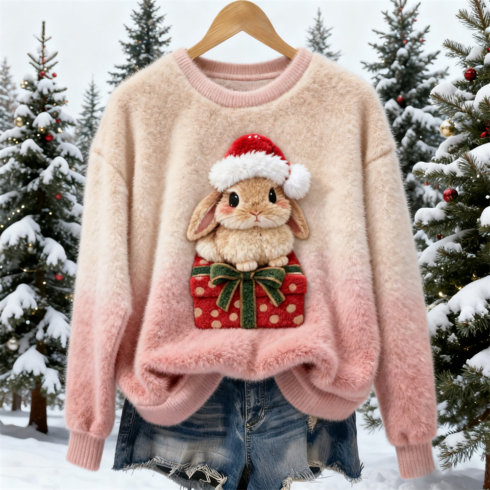 Christmas Gift Rabbit Design Women's Flannel Sweater