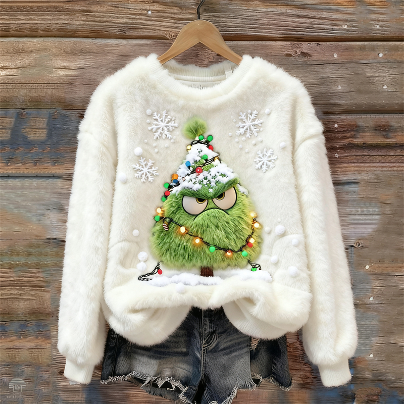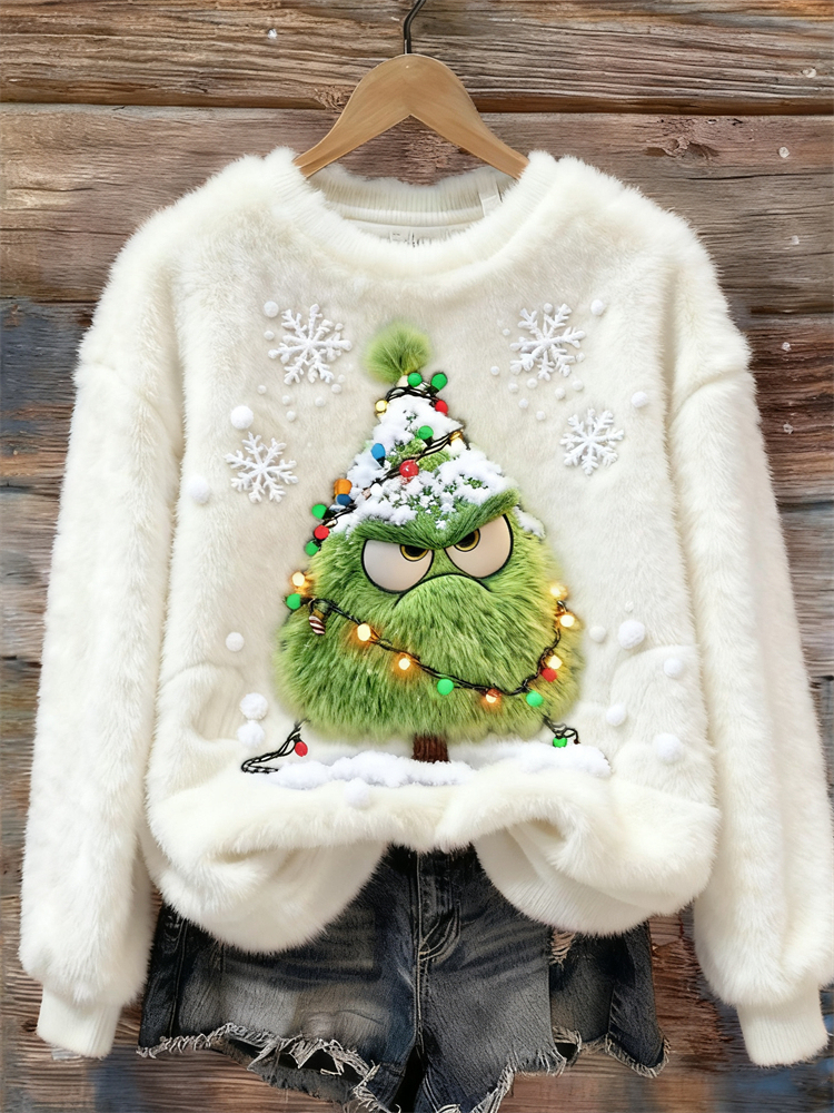 Funny Angry Christmas Tree Cozy Plush Sweatshirt