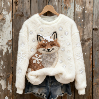 Fuzzy Fox In The Snow Snowflakes Cozy Plush Sweatshirt