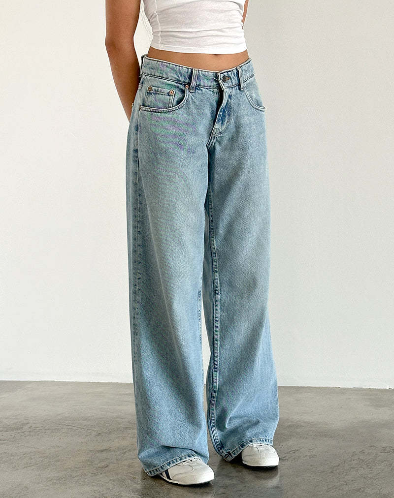 Roomy Extra Wide Low Rise Jeans in Washed Blue Green