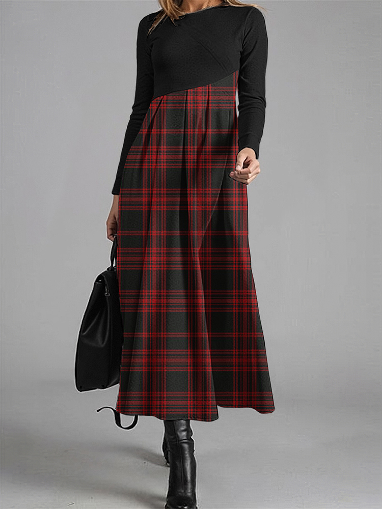 Women's Elegant Christmas Check Contrast Wool Dress
